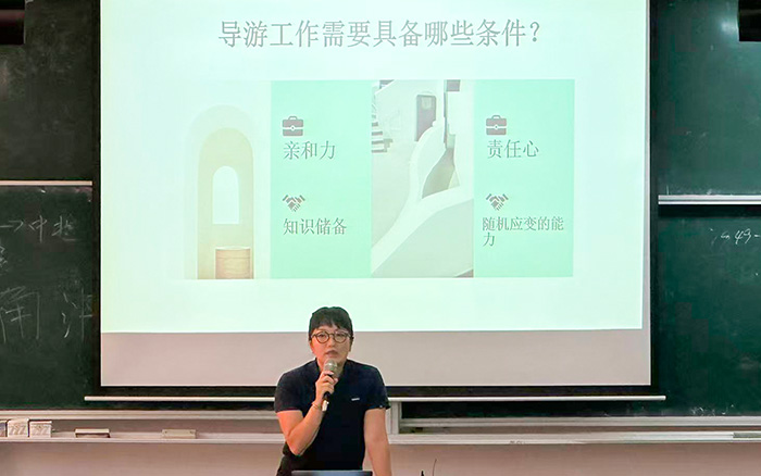 本次宣讲会特邀沪上涉外旅游行业企业——上海奥程国际旅行社有限公司的杨芫妍经理担任主讲。会上,杨经理详细介绍企业背景、行业发展趋势、人才需求以及实习岗位内容等,并结合实际案例,分析西班牙语人才在文旅行业的广阔发展空间。在场学生认真聆听,并就职业发展路径、实习要求与能力准备等问题积极提问,杨经理逐一解答,现场互动氛围良好。