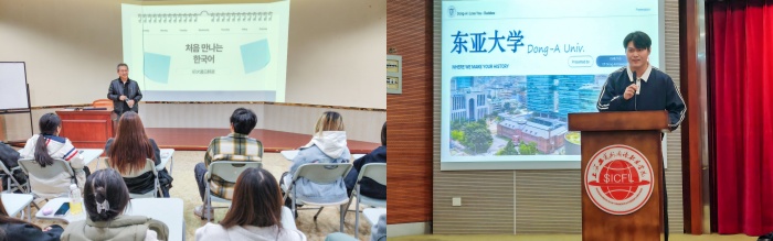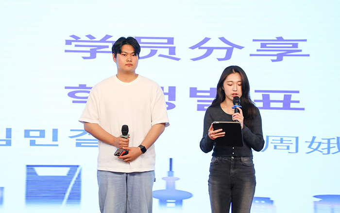 学术交流环节内容充实。金钟贤院长为我校韩语专业学子开展了两场高质量的学术分享。18日下午,金院长面向我校应用韩语(中高职贯通)2501班进行专业韩语专题授课,聚焦核心知识与实践应用,通过精准化教学指导,助力同学们夯实专业基础、提升语言运用能力。11月20日下午的专题报告中,东亚大学学子金敃杰(김민걸)首先从办学特色、学科优势、校园文化等方面详细介绍了东亚大学,为现场交流搭建深入了解的桥梁。随后金院长作《韩国现代社会文化》专题报告。内容深入浅出、详实生动,帮助学子们拓宽国际视野,深化对韩语学习与跨文化研究融合价值的理解。 闭营:友谊续航,合作再启新篇